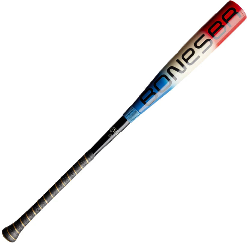 Engineered to meet BBCOR certification standards, the Bonesaber Hybrid delivers explosive power, balanced swing weight, and superior control – the perfect weapon for serious high school and college hitters. This small-batch release pays tribute to the spirit of American baseball, making it a must-have for collectors and competitors alike.