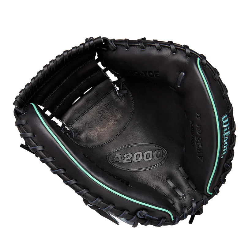 The oversized 34” profile gives pitchers a huge target, while the Black Pro Stock® leather palm and Half Moon Webdeliver the durability, comfort, and structure needed to handle high-velocity fastballs and breaking balls in the dirt. Inspired by New York pride, Seafoam welting and Bold Logos offer a nod to the Statue of Liberty, blending style with substance.