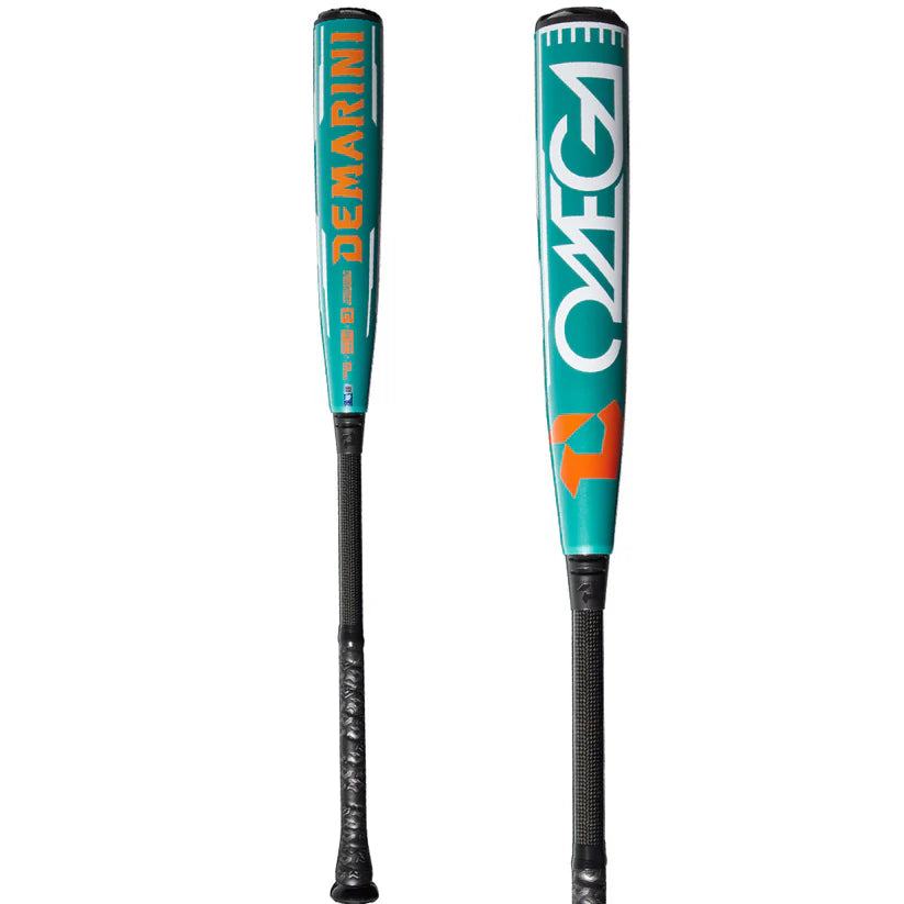The DeMarini Omega BBCOR bat offers a balanced swing feel, perfect for players seeking both control and power. Designed with two-piece Half + Half construction; it combines an Omega X14 Alloy Barrel, inspired by DeMarini’s Voodoo One and The Goods BBCOR bats, while offering a 1275 Composite Handle for a lightweight, high-performance hybrid design.