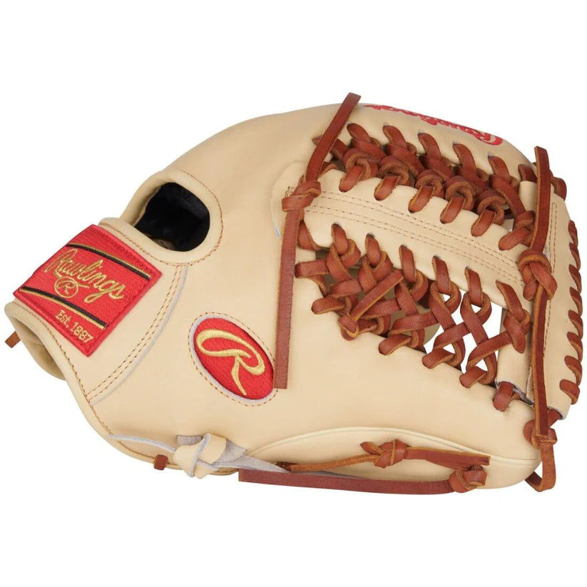 Have confidence in your everyday gamer with the Rawlings 11.75-inch Heart of the Hide infield glove. Sport the traditional look of a glove with camel leather and dark tan laces, highlighted with the scarlet red and gold accents of the Rawlings patch. The Modified Trap-Eze web makes it ideal for infielders wanting to eat up hard hits while maintaining smooth transitions and fielding. The 200 pattern is an infield-friendly option, giving you the confidence you need to create five-star plays regularly and utilize fast hands. The ultra-premium, world-renowned Heart of the Hide leather will give you pro-level glove performance that can last for years. Grab your Rawlings 11.75-inch Heart of the Hide infield glove today!