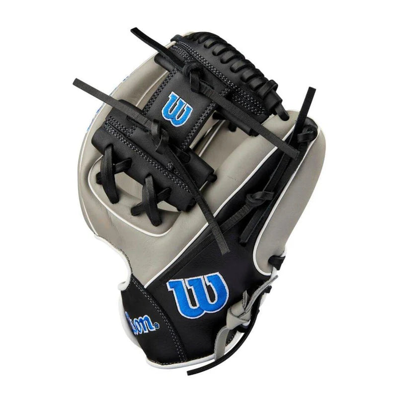 For the emerging defensive wizard on the infield dirt, the A900® PF1125 delivers game-ready fit and soft feel to get outs at any base. Designed with Pedroia Fit™ Technology, this 11.25” infield baseball glove accommodates youth players ages 8-12 with smaller hands, creating a secure feel using shorter finger stalls and a narrower wrist opening. Ultra-soft Black & Silver Full Grain leather is ready to play, and the glove’s H-Web construction helps corral hard-hit balls at second base, third base or shortstop
