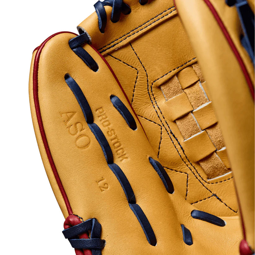 Rachel Garcia designed her Winter 2024 A2000® ASO to elevate her performance in the circle. Engineered for elite pitchers to elevate the rise ball or catch batters off guard with the changeup, the 12” A2000 ASO uses a Closed Weave Web to hide pitch grips from the center of the infield. Garcia’s A2000 features Vintage Tan Pro Stock® leather that offers lasting performance and forms to the player’s hand as it breaks in, and the A2000 palm stamp features an image of the American flag for the USA Softball star.